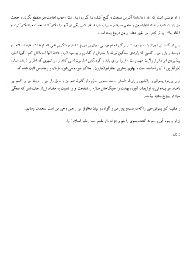 ﭘﺲ از ﮔﺬﺷـﺘﻦ دوران ﺑﻨـﺪه و دوﺳﺖ و ﺑﺮﮔﺰﯾـﺪه ام ﻣﻮﺳـﯽ ،واي ﺑﺮ دروغ ﺑﻨـﺪان و ﻣﻨﮑﺮﯾﻦ ﻋﻠﯽ )اﻣـﺎم ﻫﺸـﺘﻢ ﻋﻠﯿﻪ اﻟﺴـﻼم ( و