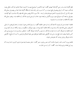 ﺑﺠﺒﺮﺋﯿﻞ ﻣﺮاﺟﻌﻪ ﮐﺮد ،ﺟﺒﺮﺋﯿﻞ ﻫﻢ ﺑﻪ ﭘﺮوردﮔﺎرش ﻣﺮاﺟﻌﻪ ﻧﻤﻮد ،ﺧﺪا ﺑﻪ او وﺣﯽ ﻓﺮﻣﻮد :ﻓﺪك را ﺑﻪ ﻓﺎﻃﻤﻪ ﺑﺪه ،ﭘﯿﻐﻤﺒﺮ ﺻـﻠﯽ اﷲ