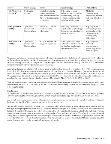 (2019) 8 Review and cevimeline and significantly vs placebo; pi- methodology, clear