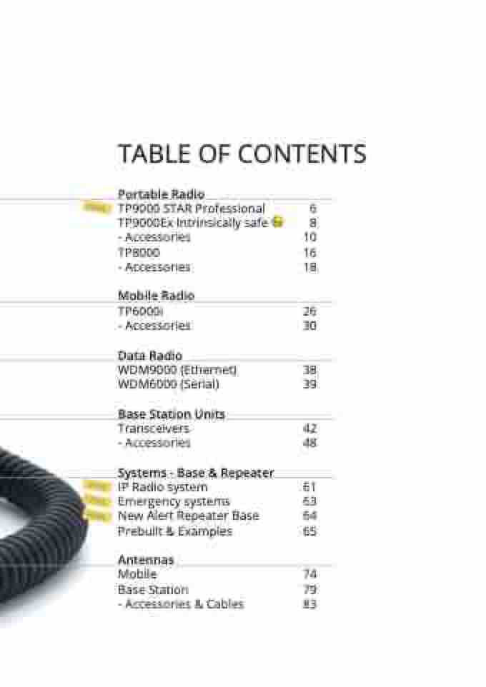 TP9000 STAR Professional 6 TP9000Ex Intrinsically safe 8 - Accessories 10 TP8000 16 - Accessories 18