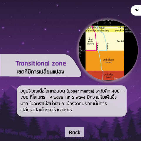92 Transitional zone เขตที่ภีกายเปฤี่มนแปฤง อผู่ตฝิเวฑเดื้อโฟกตอดตด (Upper mentle) ฝะดัตฟึก 400 - 700 กิโฟเปตฝ P wave แฟะ S wave ปีควาปเฝ็วเธิ่ปขึ้ด ปาก ใดอัตฝาไป่สป่ าเสปอ เดื่องจากตฝิเวฑดี้ปีกาฝ เปฟี่ผดแปฟงโคฝงสฝ้างของแฝ่