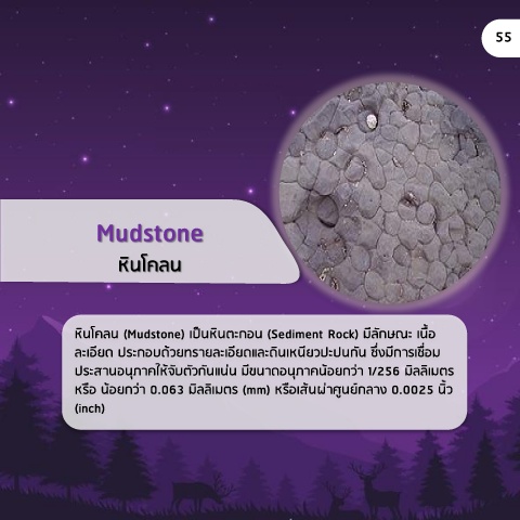 หินโคฤน (Mudstone) เป็นหินตะกอน (Sediment Rock) ภีฤักษณะ เนื้อ
