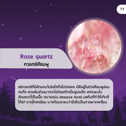 แย่ควอตซ์ที่ภีฤักษณะโปย่งใสถึงโปย่งแสง ภีสีอมู่ในช่วงสีชภฝูอ่อน