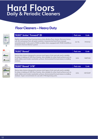 THAigShKlyIconRcenvtreaateld, lJo-wFfiollaming heavy duty alkaline floor cleaner. Removes heavy TASKI Reveal J-Fill