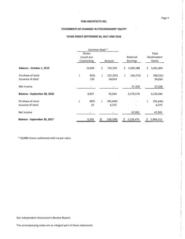 STATEMENTS OF CHANGES IN STOCKHOLDERS' EQUITY