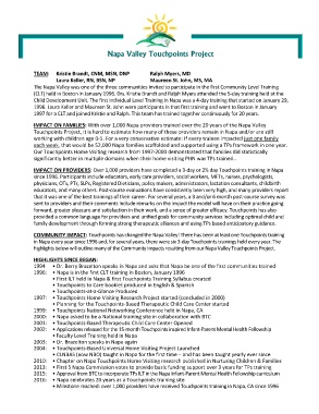 • Milestone reached: over 1,000 providers have received Touchpoints training in Napa, CA since 1996