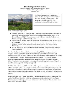 The Utah Touchpoints Network Site has focused on Early Childhood programs since its