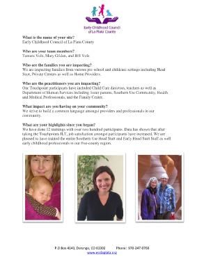 pleased to have trained the entire Southern Ute Head Start and Early Head Start Staff as well