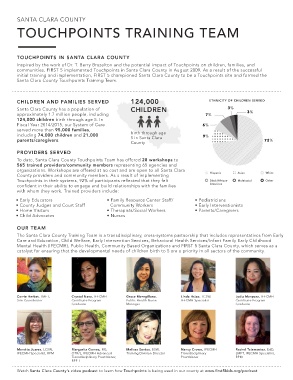 initial training and implementation, FIRST 5 championed Santa Clara County to be a Touchpoints site and formed the