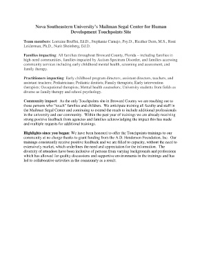 Community impact: As the only Touchpoints site in Broward County we are reaching out to