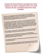 THANKS FOR YOUR INTEREST IN GUARDIAN PET FOOD COMPANY. WE MAKE A DIFFERENT KIND OF PET FOOD BECAUSE WE ARE A DIFFERENT KIND OF PET FOOD COMPANY.