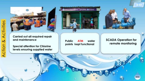 10 Action & Activities Carried out all required repair and maintenance Public ATM water SCADA Operation for points kept functional remote monitoring Special attention for Chlorine levels ensuring supplied water