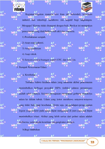 menimbulkan iritasi. Akibat yang lebih serius dari polusi udara adalah