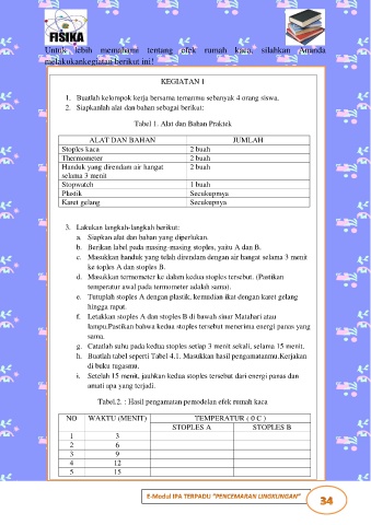 Tabel.2. : Hasil pengamatan pemodelan efek rumah kaca