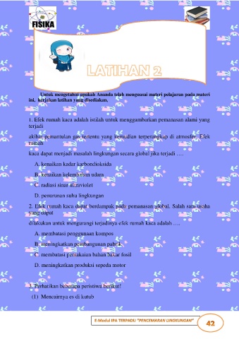 2. Efek rumah kaca dapat berdampak pada pemanasan global. Salah satu usaha