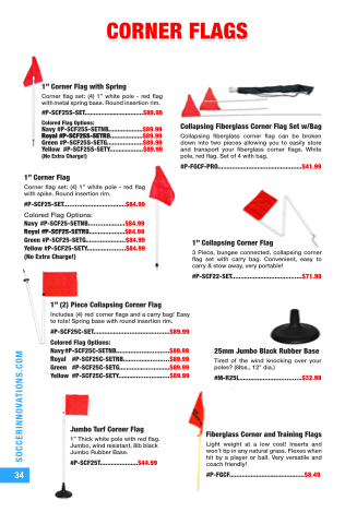 Colapsing fiberglass cornerflag can be broken downintotwopiecesalowingyoutoeasilystore and transportyourfiberglasscornerflags.White pole,redflag.Setof4withbag.