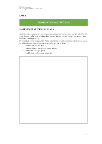 Berdasarkan solusi yang sudah Anda rencanakan, buatlah analisis dari rencana usaha