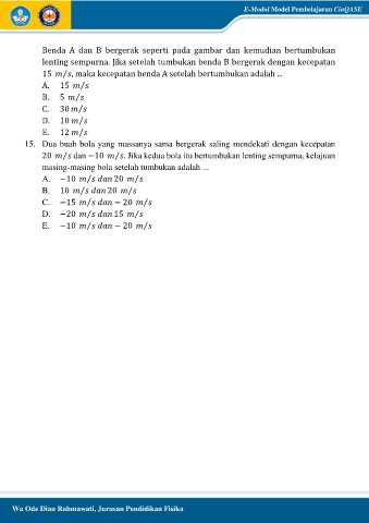 15 , maka kecepatan benda A setelah bertumbukan adalah ...