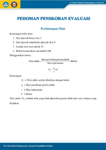 Nilai akhir ( N ) adalah nilai yang telah diperoleh peserta didik dari soal evaluasi yang