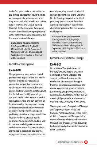 The programme in Occupational Therapy aims to provide South Africa and KwaZulu-Natal in particular, with a cadre of skilled Occupational Therapy staff to ensure effective, efficient and accessible Occupational Therapy service delivery in both public and private sectors in diverse social conditions.