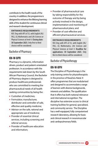 NSC-Deg with APS of 33, with English (HL/ FAL), LO, Mathematics and Life Sciences or Physical Sciences at level 4. Closing date: 30 September 2025. Only first to third choices will be considered.