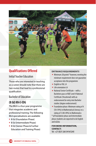 The BEd is a four-year programme that integrates academic and professional training. The following BEd specialisations are available: