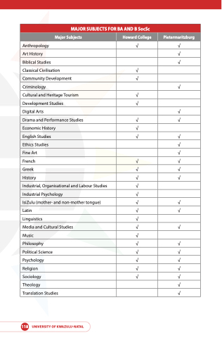 MAJOR SUBJECTS FOR BA AND B SocSc