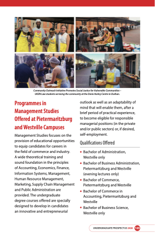 Programmes in Management Studies Offered at Pietermaritzburg and Westville Campuses