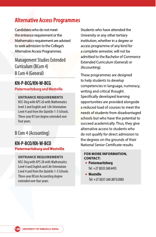 the entrance requirement or the Mathematics requirement are advised to seek admission to the College’s Alternative Access Programmes.