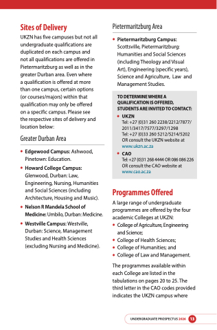 The programmes available within each College are listed in the tabulations on pages 20 to 25. The third letter in the CAO codes provided indicates the UKZN campus where