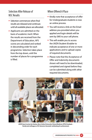 the UKZN Student iEnabler to indicate acceptance of one or more applications and to upload copies of required documents.