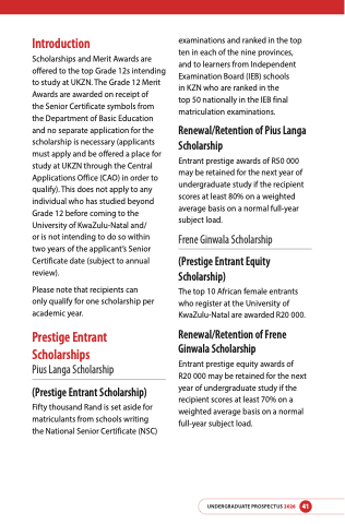 Scholarships and Merit Awards are offered to the top Grade 12s intending to study at UKZN. The Grade 12 Merit Awards are awarded on receipt of