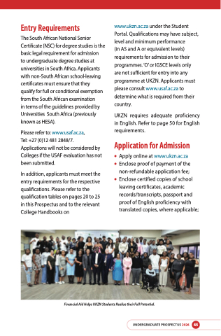 UKZN requires adequate proficiency in English. Refer to page 50 for English requirements.
