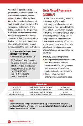 • The Coordinator, Student Exchange Programme, Room E445, Level 4, Denis Shepstone Building, Howard College Campus, University of KwaZulu-Natal Tel: +27 (0)31 260 2870,