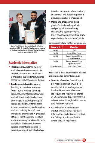• Transfer of credits: One full credit per module/class at UKZN is 16 credits. Full-time (undergraduate) local and international students