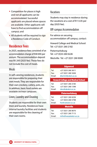 Students may stay in residence during the vacations at a cost of R113.05 per day (2025 fee).