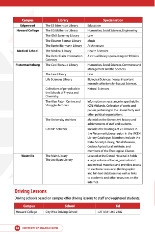 Driving schools based on campus offer driving lessons to staff and registered students.