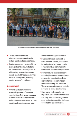 • Previously, student work was assessed by means of semester examinations. This is now changing to a mix of end of semester exams and continuous assessment or ‘class marks’ made up of assessed tasks