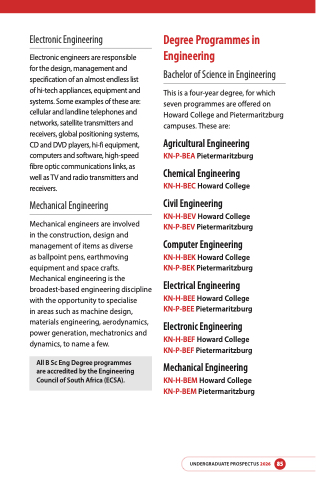 All B Sc Eng Degree programmes are accredited by the Engineering Council of South Africa (ECSA).