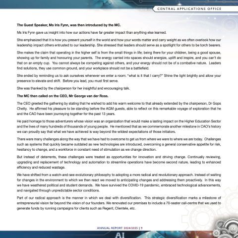We have shifted from a watch-and-see evolutionary philosophy to adopting a more radical and revolutionary approach. Instead of waiting for changes in the environment to which we then react we moved to anticipating changes and addressing them proactively. In this way we have weathered political and student demands. We have survived the COVID-19 pandemic, embraced technological advancements, and navigated through unpredictable sector conditions.
