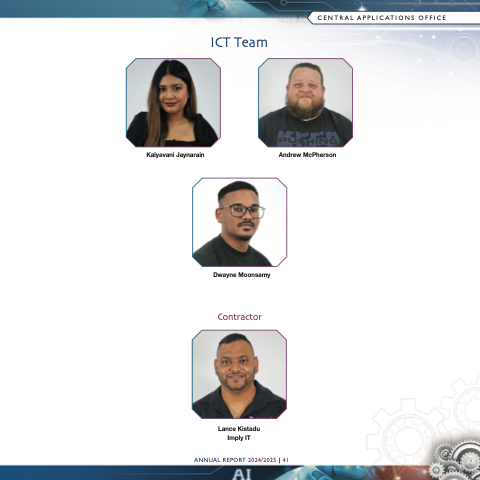Kalyavani Jaynarain Andrew McPherson ICT Team CENTRAL APPLICATIONS OFFICE Dwayne Moonsamy Contractor Lance Kistadu Imply IT ANNUAL REPORT 2024/2025 | 41