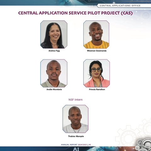 CENTRAL APPLICATION SERVICE PILOT PROJECT (CAS) CENTRAL APPLICATIONS OFFICE Andrea Figg Wiseman Gwamanda Andile Ntombela Prinola Ramdhon NSF Intern Thabiso Manqele ANNUAL REPORT 2024/2025 | 45