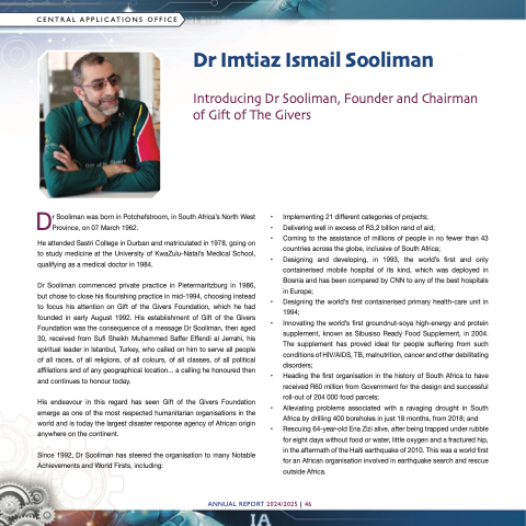 Introducing Dr Sooliman, Founder and Chairman of Gift of The Givers