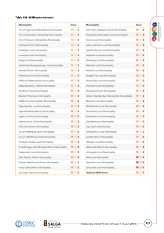 Table 108. MIMI maturity levels MUNICIPAL INNOVATION MATURITY INDEX (MIMI) 111