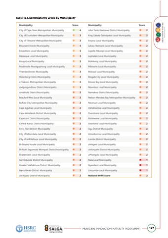 Table 132. MIMI Maturity Levels by Municipality MUNICIPAL INNOVATION MATURITY INDEX (MIMI) 127