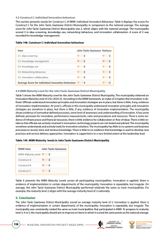 Table 149. MIMI Maturity levels in John Taolo Gaetsewe District Municipality