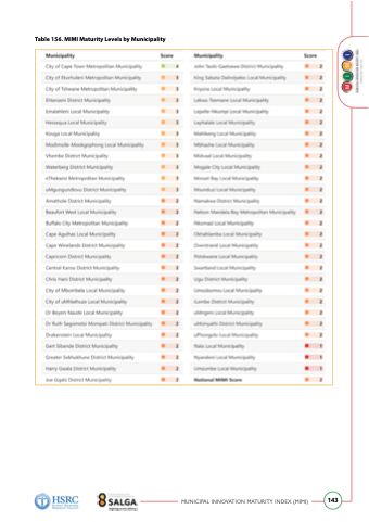 Table 156. MIMI Maturity Levels by Municipality MUNICIPAL INNOVATION MATURITY INDEX (MIMI) 143