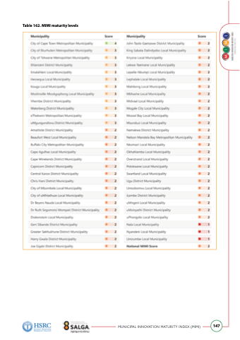 Table 162. MIMI maturity levels MUNICIPAL INNOVATION MATURITY INDEX (MIMI) 147