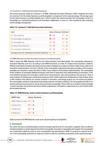Table 173. MIMI Maturity levels in Lekwa-Teemane Local Municipality