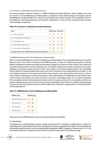 Table 191. MIMI Maturity levels in Mahikeng Local Municipality